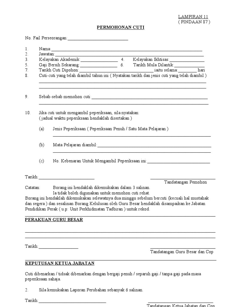 Borang Cuti Tanpa Rekod Peperiksaan Pdf