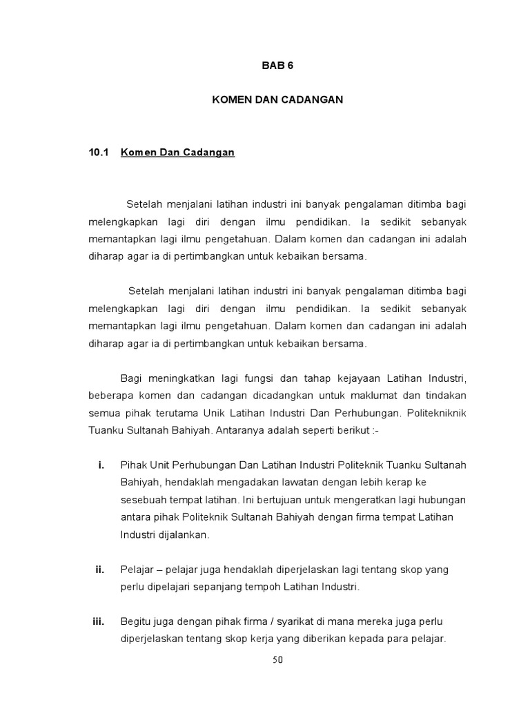 Contoh Cadangan Laporan Latihan Industri Isaiahctzx